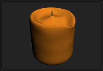 For the candle, start with a cylinder, convert to Editable Poly, and deform the mesh with paint deformation. Then add the candle thread.